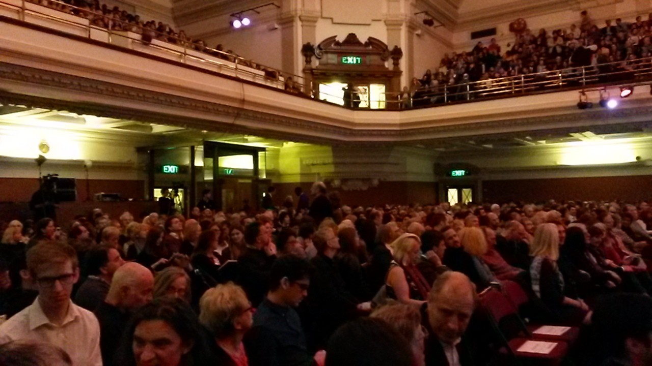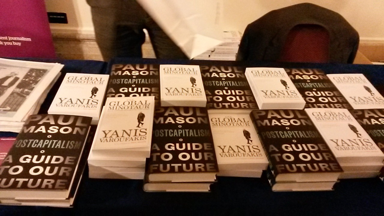Γύρω στα 2,000 άτομα παραβρέθηκαν το βράδυ της Παρασκευής στο Central Hall του Westminster, δίπλα στο κτίριο της Βρετανικής βουλής, για να ακούσουν την συνομιλία του Γιάνη Βαρουφάκη με τον οικονομικό συντάκτη του Βρετανικού τηλεοπτικού σταθμού Channel 4 Paul Mason.
