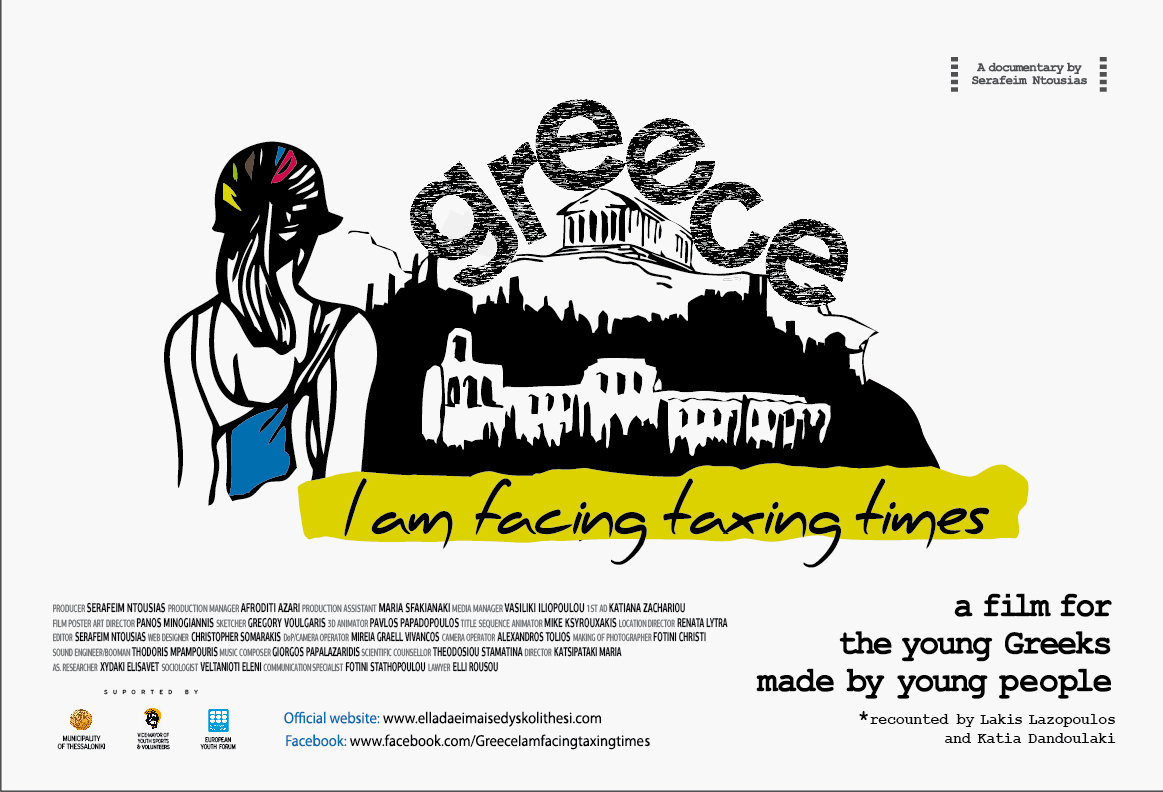 This week a Greek documentary was screened at the Great Hall of the Hellenic Centre. Greece… I’m facing taxing timesis a full-length documentary by the director Serafeim Ntousias. The theme of the documentary is the effect of the economic crisis on the youth and it aims to give young people a voice by interviewing people living in Greece and the UK. It is not a financial documentary but a documentary about Greece seen through the eyes of Greeks living and studying abroad.